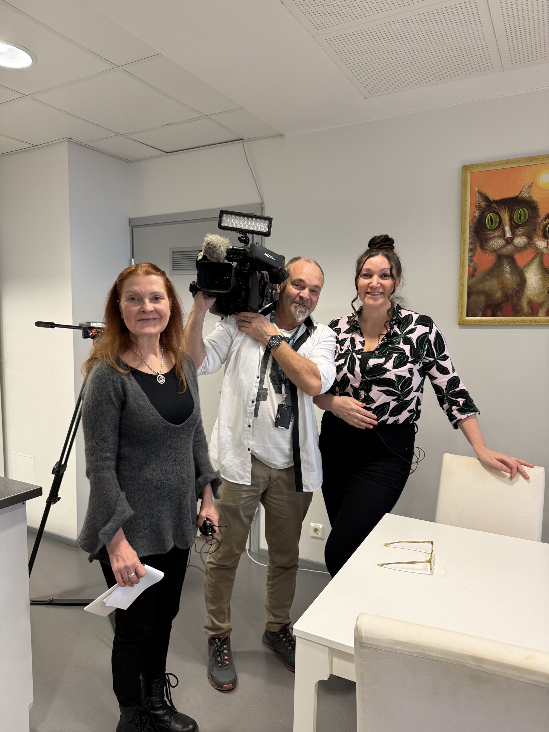 Kuvassa Nadja Ylen toimittaja Minna Pantzarin ja kuvaaja Markku Rantalan kanssa.